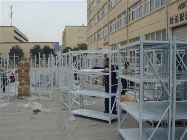 该公司为了淮安,是一家物流中转站,需要承载5吨以上的货物,只有重型货架能满足其需求,每层重型货架都配备了一个钢托盘,很便于该物流中转站的叉车运作,不过一般建议物流中转站采用穿梭式货架...