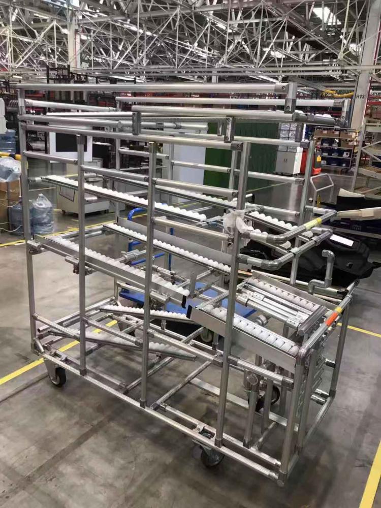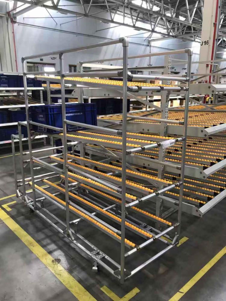 线棒式货架,别名有:复合管货架、精益管货架、是采用柔性线棒与种类丰富的线棒连接件组合而成,线棒货架是主体采用线棒与种类丰富的线棒连接件组装,组合成形式多样的工位器具。线棒货架产品的特性具有防酸耐碱,不生锈的特点,能根据需要而设计调整,符合人体工位学原理,已广泛应用于家电、汽车、轻工电子等行业工厂中。由于线棒管材及配件均可重复循环使用,所以当仓储车间需要调整改善时,可通过改变线棒式货架的结构,用原有的配件重新组装去适应新的要求,从而为企业节省一些不必要的开支,提高生产效率,便于企业整体规划。